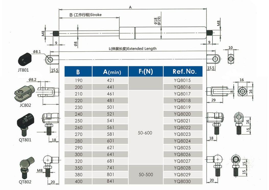 注:由于氣彈簧是非標(biāo)準(zhǔn)的,以上僅為型號(hào)的一部分。我們可以根據(jù)客戶的要求定制。