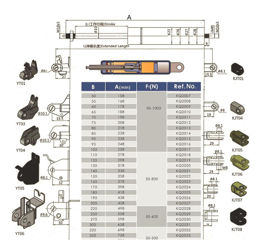 注:由于氣彈簧是非標(biāo)準(zhǔn)的,以上僅為型號(hào)的一部分。我們可以根據(jù)客戶的要求定制。