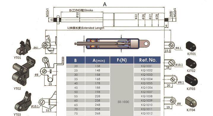 注:由于氣彈簧是非標準的,以上僅為型號的一部分。我們可以根據(jù)客戶的要求定制。