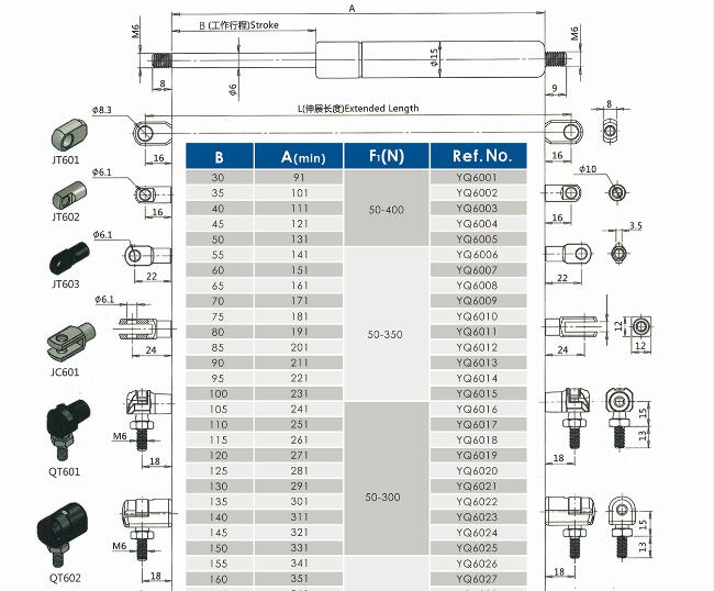 注:由于氣彈簧是非標(biāo)準(zhǔn)的,以上僅為型號(hào)的一部分。我們可以根據(jù)客戶的要求定制。